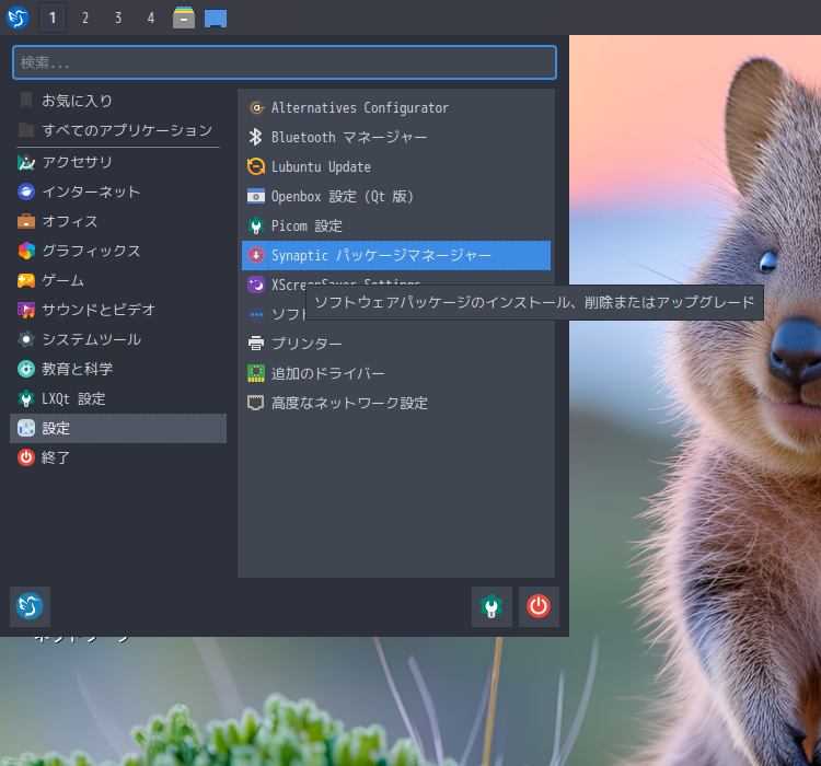 「Discover」より使いやすい、「Synaptic」もリポジトリに存在するので、「Synaptic」もインストールして使用します。