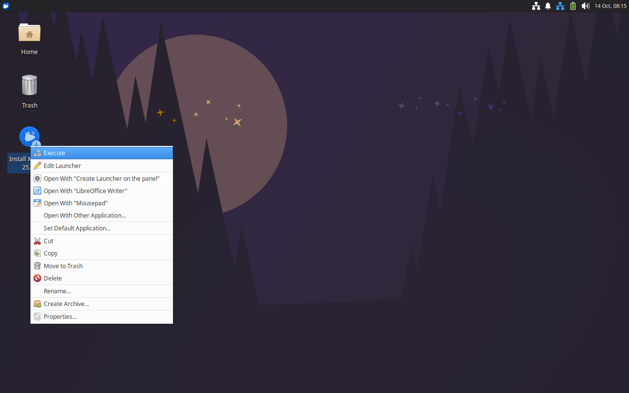 1. 概要 インストールの手順に関しては、「Linux - Ubuntu - 25.10 - 共通事項」をご参照ください。 2. インストール デスクトップが表示された時点で、「Install Xubuntu」を右クリックして「Execute」