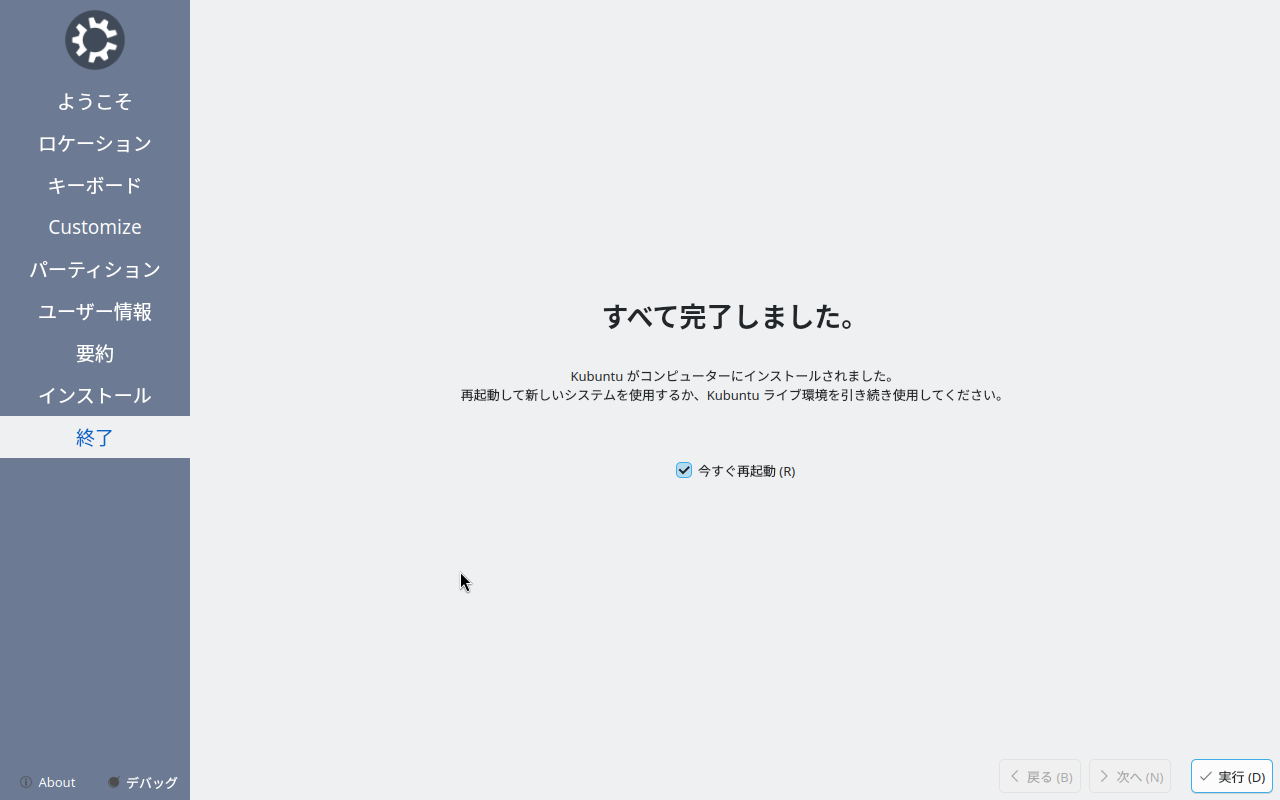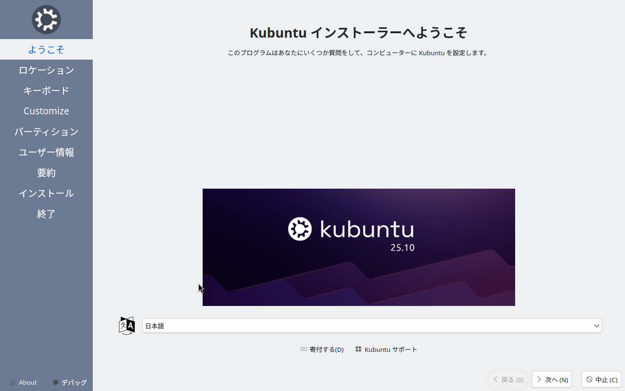 「Kubuntu」は、「Lubuntu」と同様、インストール時の見た目が、いささか他のディストリビューションと異なるので、インストール手順を別途記述します。