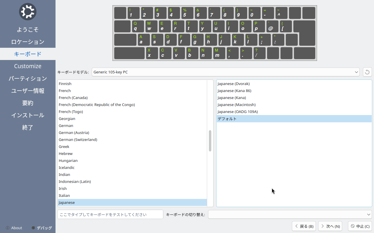 使用しているキーボードレイアウトを選択して