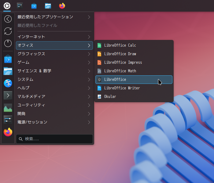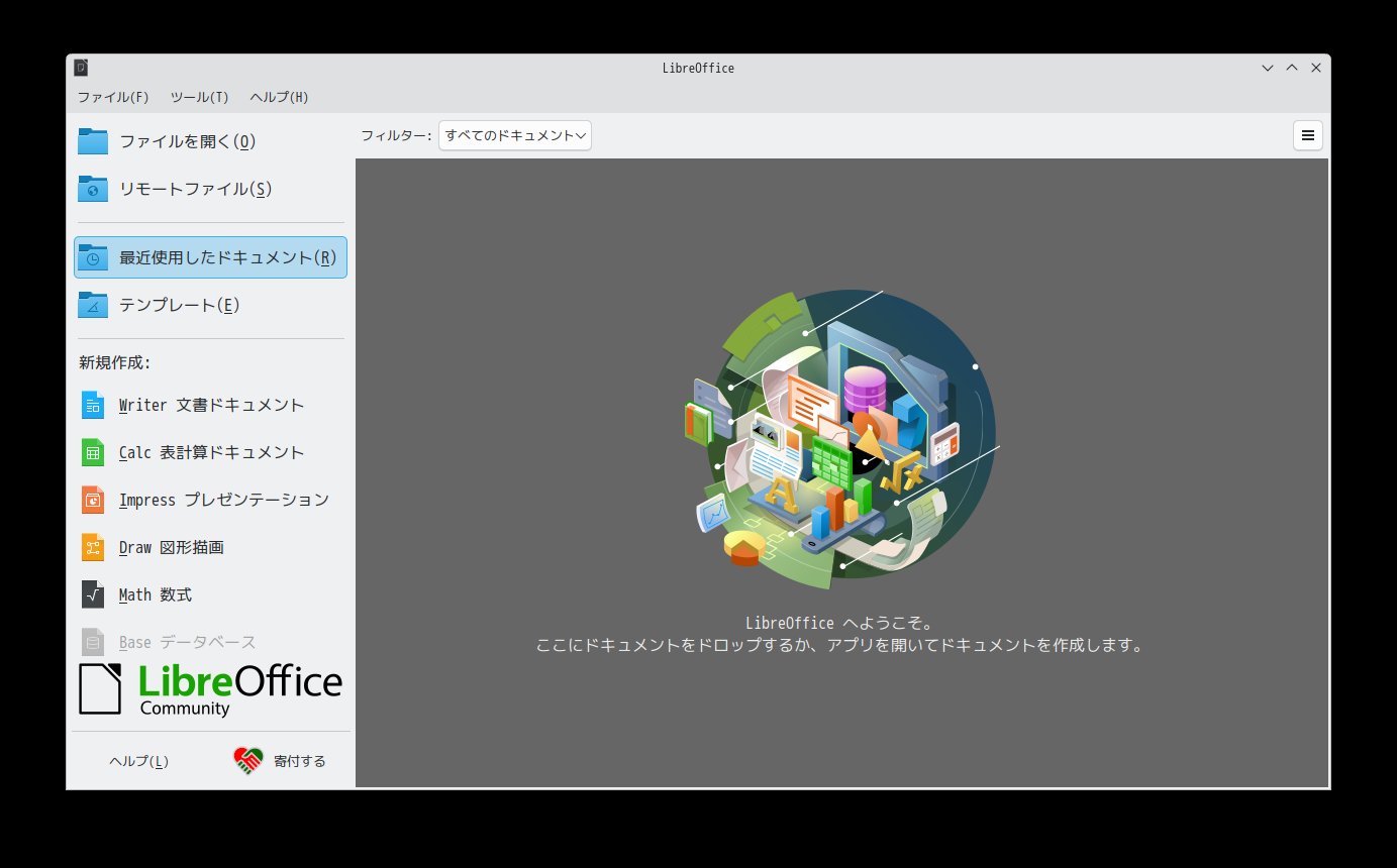 オフィススイートとして、「LibreOffice」を使用します。  「LibreOffice」は、デフォルトでインストールされ、日本語化されています。