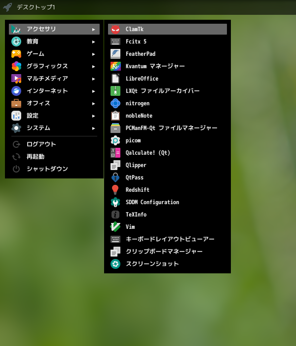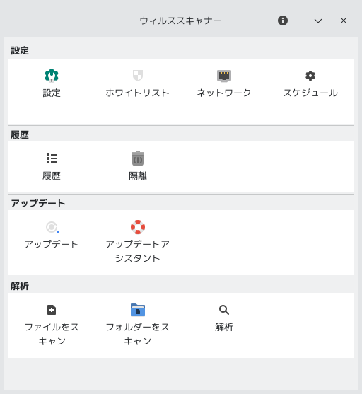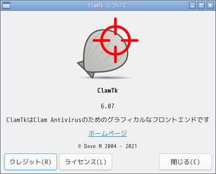 起動直後の状態です。 2025年10月17日の時点で、下記のバージョンでした。 操作方法については、「FreeBSD」のものですが「デスクトップ環境構築 - 共通事項 - ClamTk」をご参照ください。 |