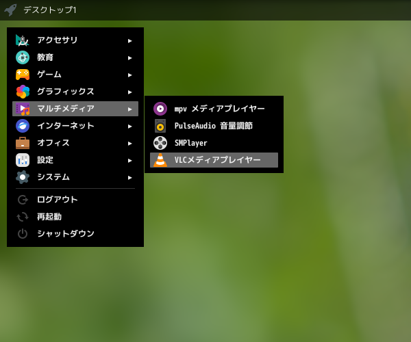 「スタート」→「マルチメディア」→「VLC メディアプレイヤー」