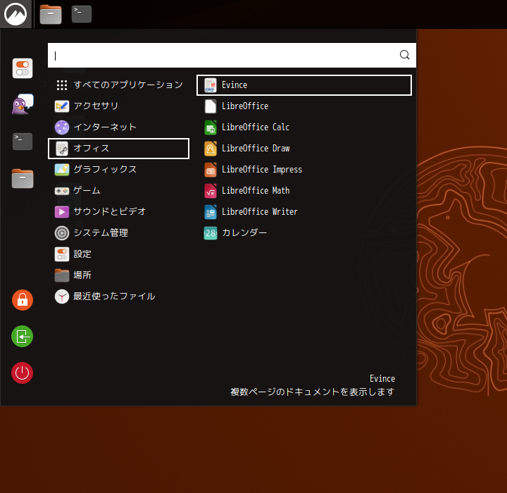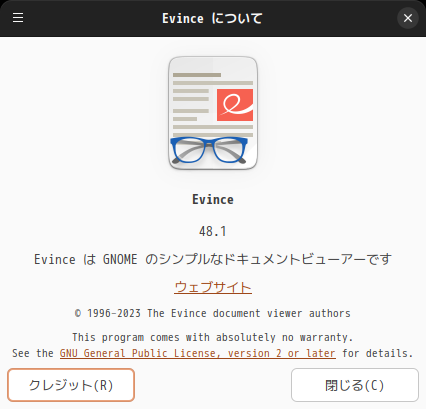 1. 概要 ドキュメントビューアとして、「Evince」を使用します。 「Evince」はデフォルトでインストールされています。 2. 起動 「スタート」→「オフィス」→「ドキュメントビューア」