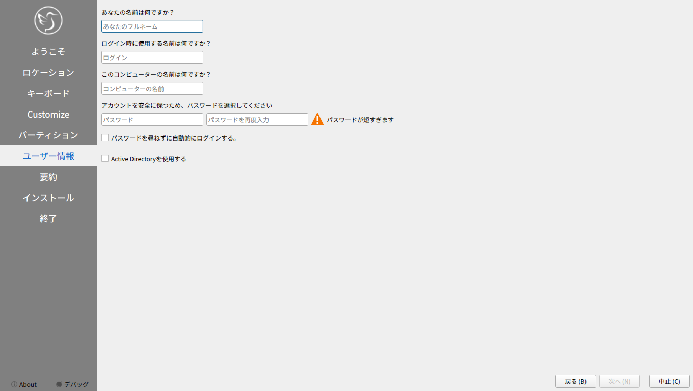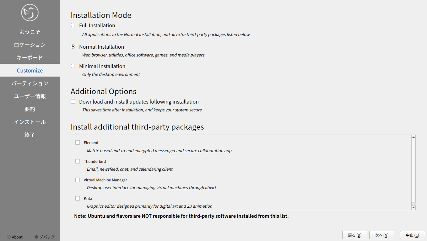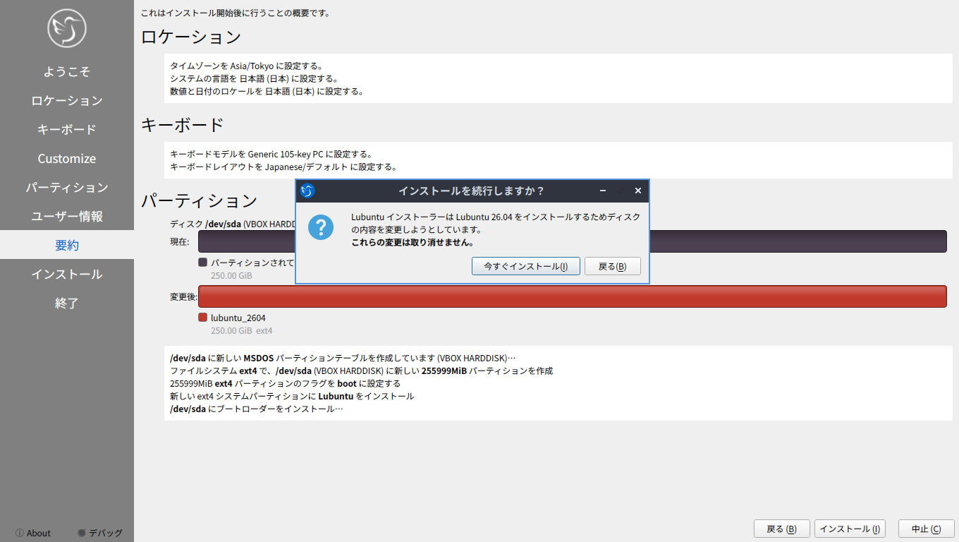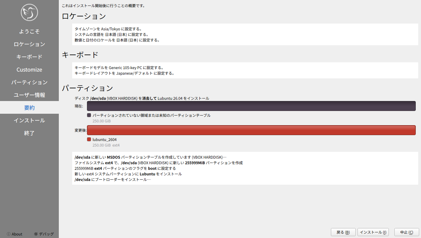 他の「Ubuntu」系のディストリビューションは、いきなりインストーラが起動しますが、「Lubuntu」では、インストーラは、手動で起動します。