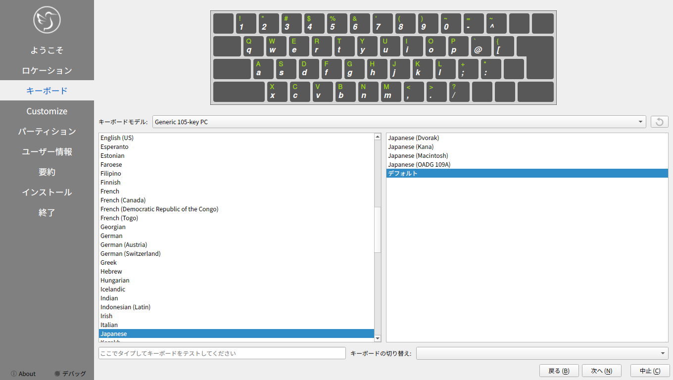 使用しているキーボードレイアウトを選択して