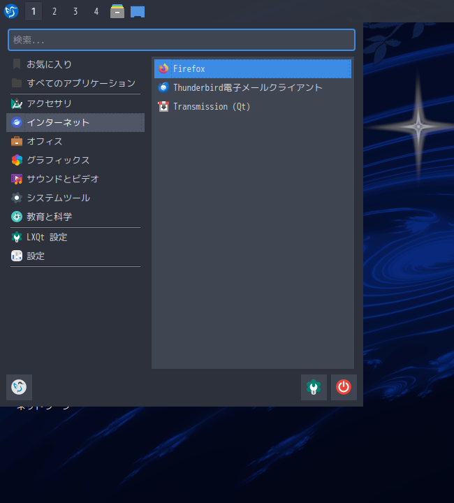1. 概要 ブラウザとして、デフォルトで「Firefox」がインストールされており、日本語化されています。 操作手順等については、「ブラウザ - Firefox - 日本語化」をご参照ください。 2. 起動 「スタート」→「インターネット」→「Firefox」