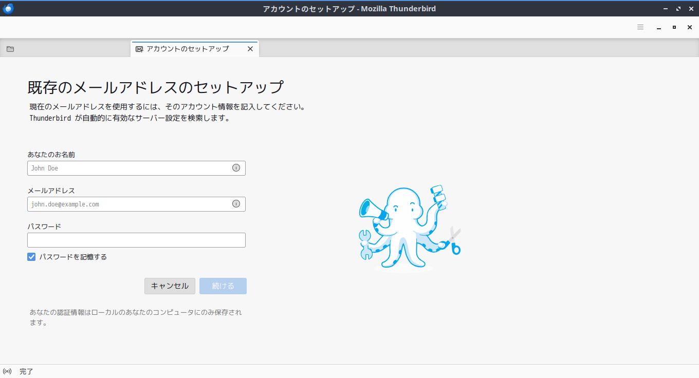 初回起動時は、メールアドレスのセットアップが起動します。