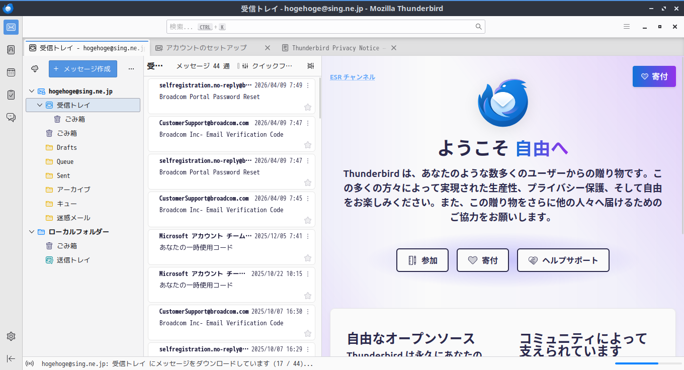 1. 概要 今回は、システムインストール時に、メールクライアントとして、「Thunderbird」をインストールしています。 2. 起動 「スタート」→「インターネット」→「Thunderbird」