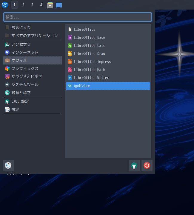 1. 概要 ドキュメントビューアとして、「qpdfview」を使用します。 「qpdfview」はデフォルトで、インストールされています。 2. 起動 「スタート」→「オフィス」→「qpdfview」