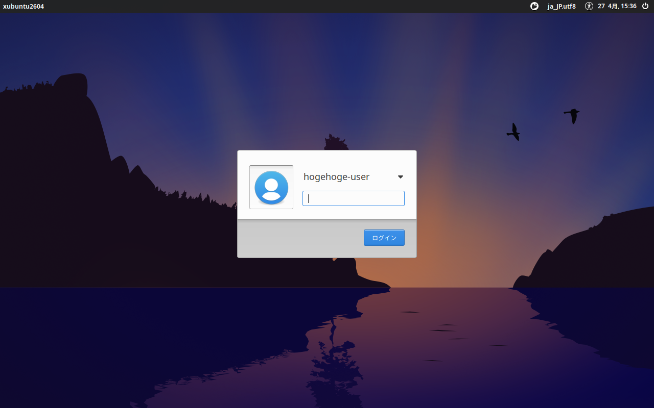 以降の手順は、「Linux - Ubuntu - 26.04 - 共通事項」と同様です。 ログイン画面が表示されれば、インストールは、完了です。