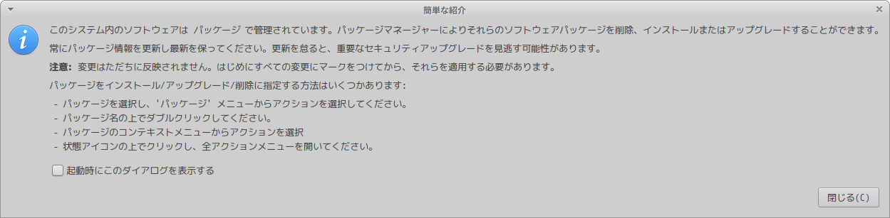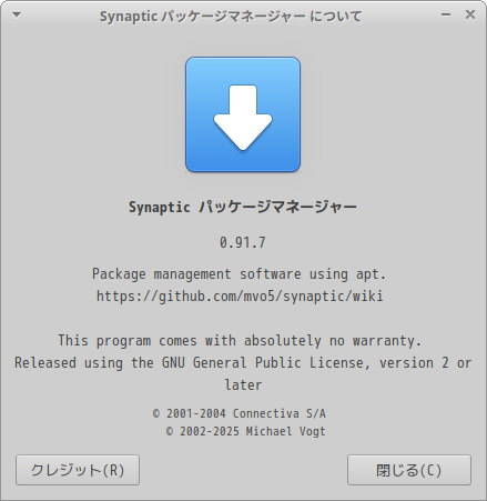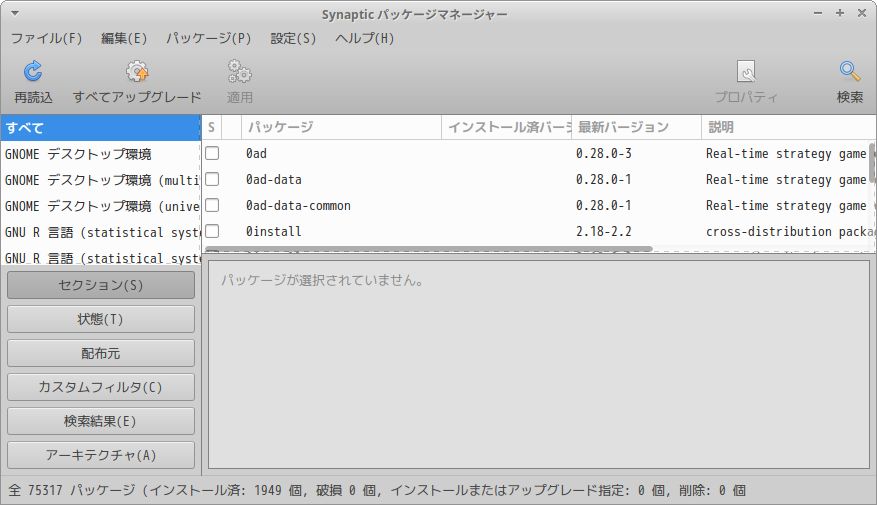「Synaptic」の詳細の操作等については「Linux - 共通事項 - パッケージ管理フロントエンド」をご参照ください。
