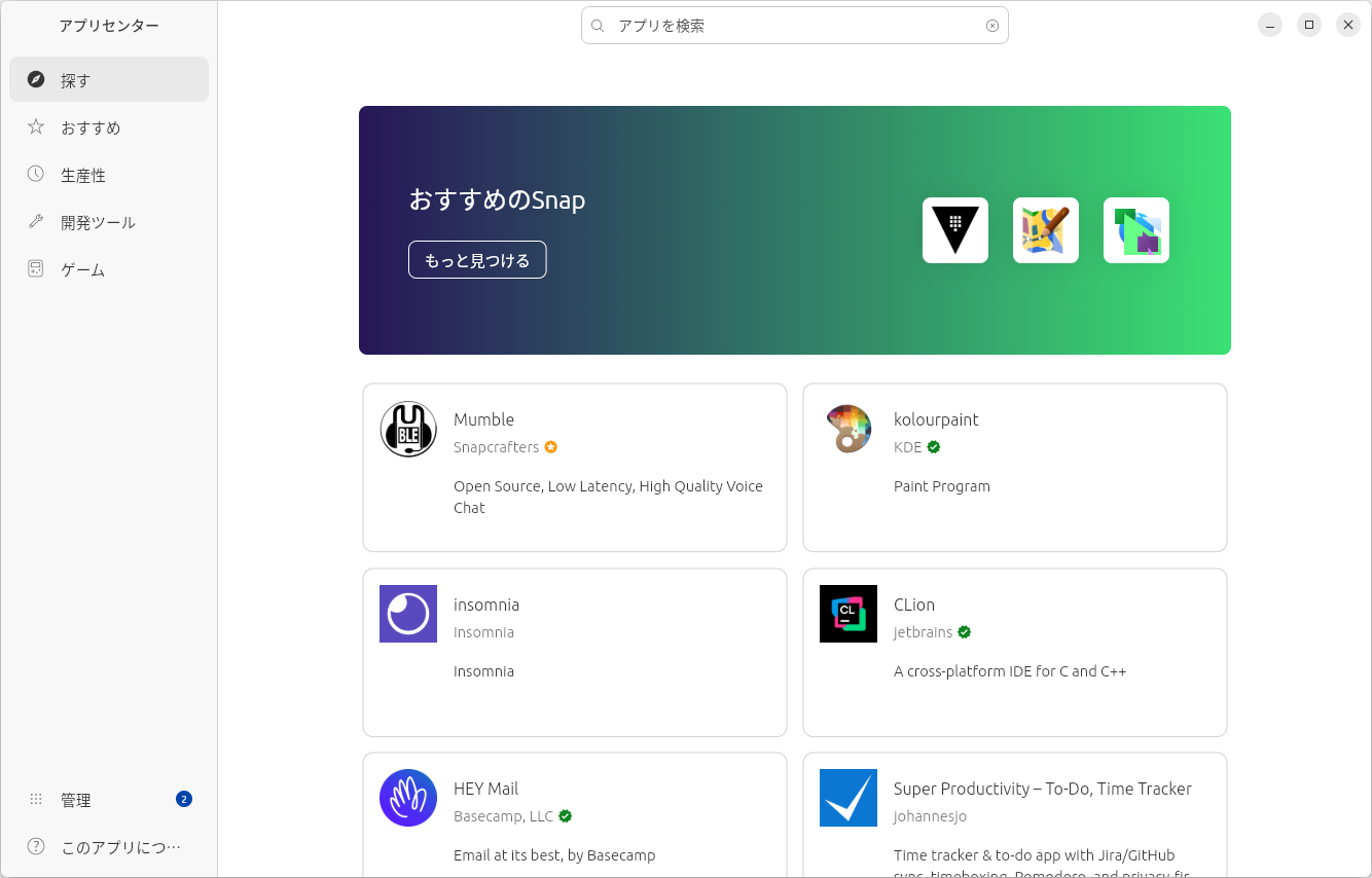 また、今回、アプリセンターと称する(プログラムは「snap-store」)というものもあります。