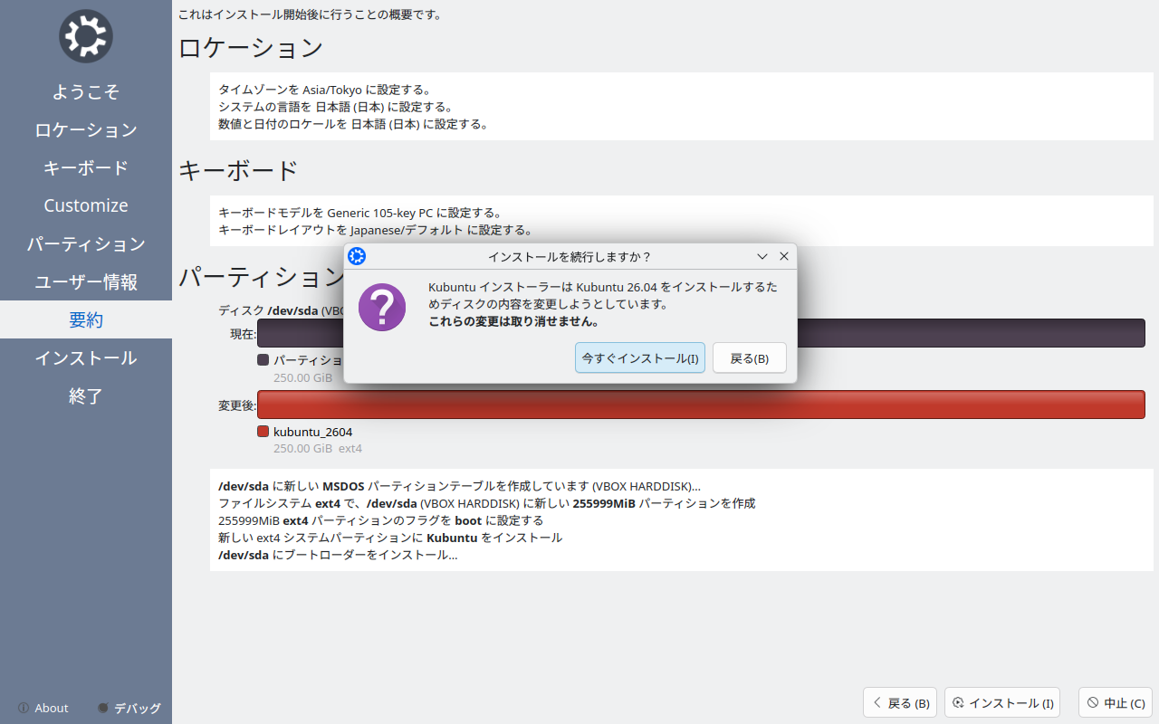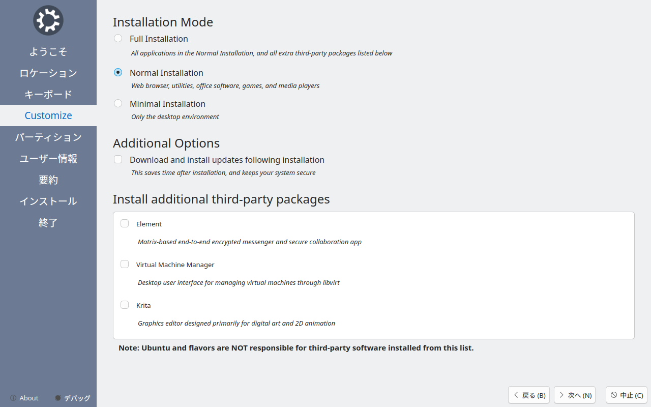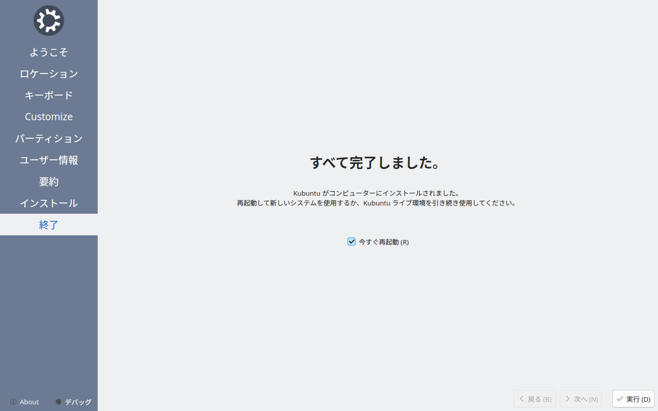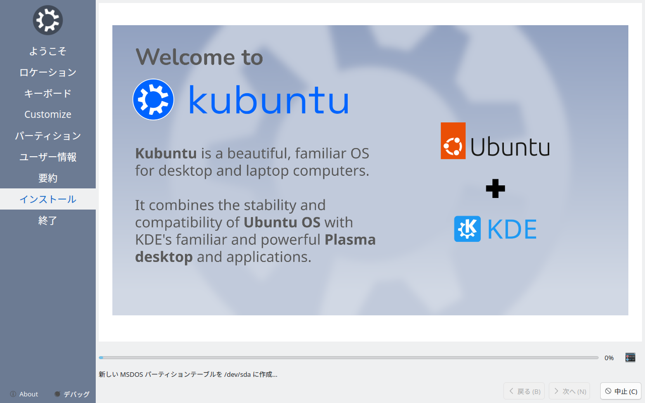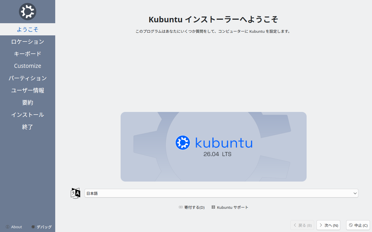 「Kubuntu」は、「Lubuntu」と同様、インストール時の見た目が、いささか他のディストリビューションと異なるので、インストール手順を別途記述します。