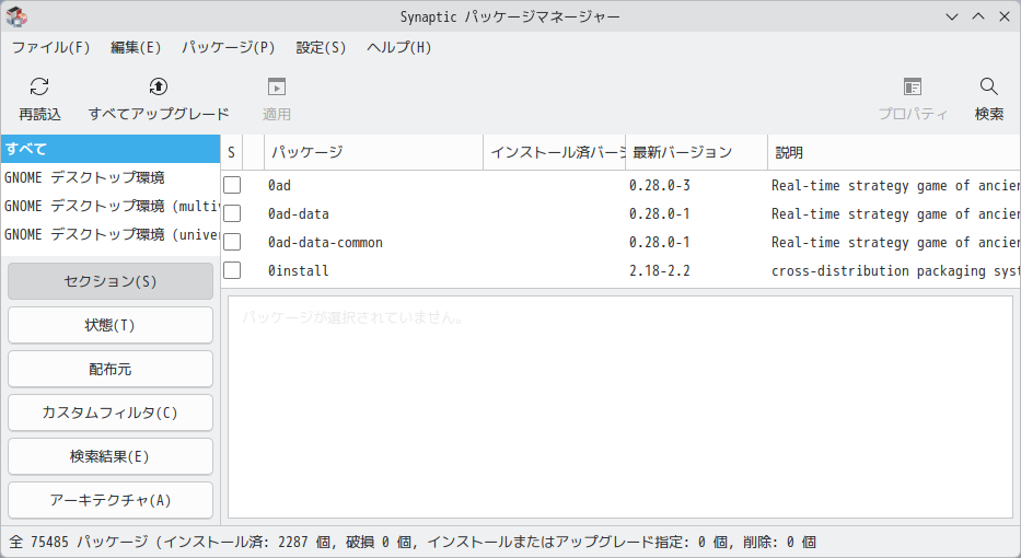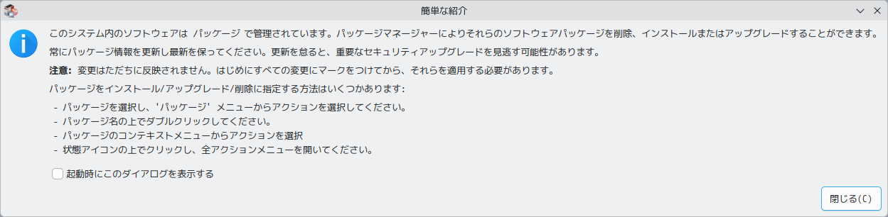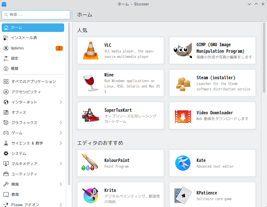 パッケージ管理の「GUI」フロントエンドとして「Discover」を使用します。