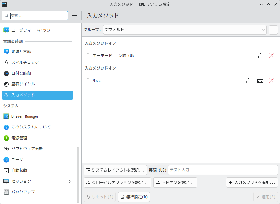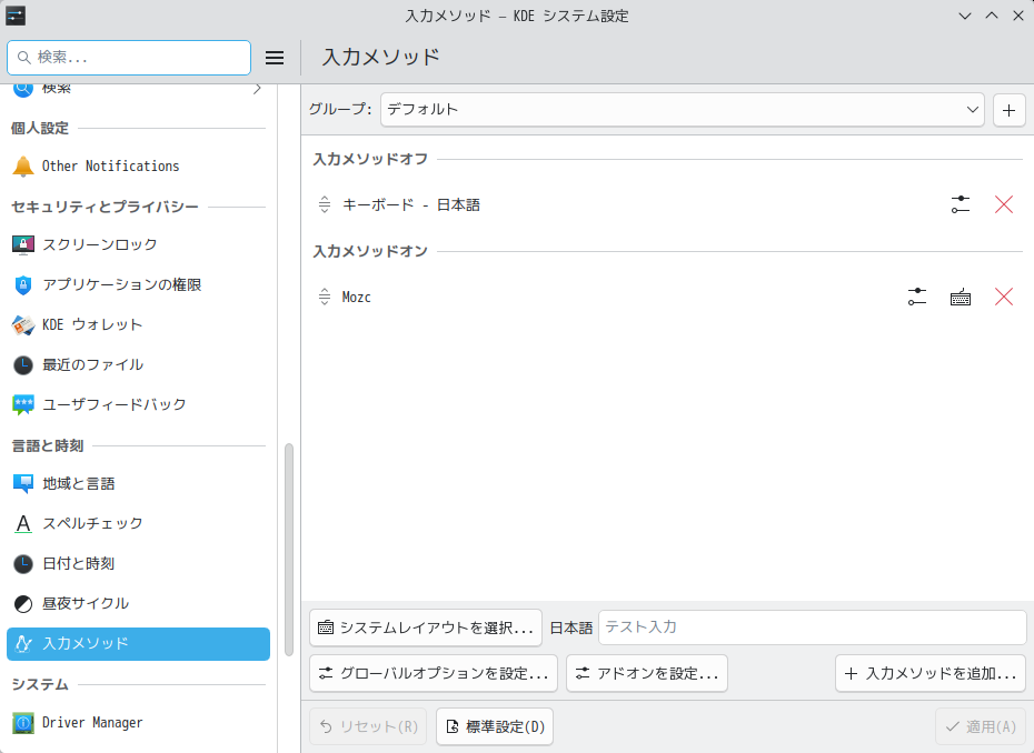 日本語入力として、「fcitx5-mozc」をインストールして、使用します。