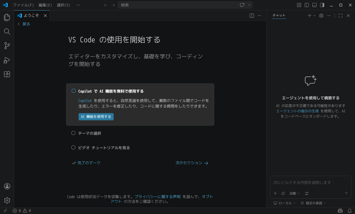 「Discover」で、「vsocde」を検索して、「code」をインストールします。