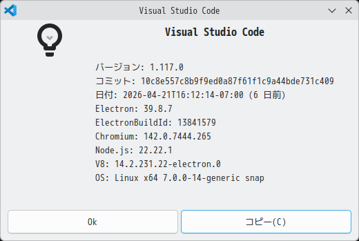 2026年4月28日の時点で、下記のバージョンでした・・・と。