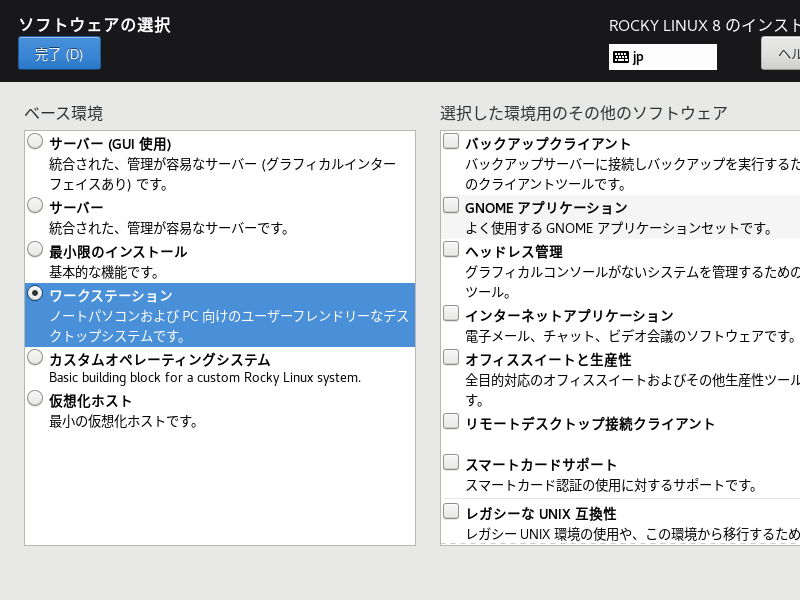 「ワークステーション」「GNOME アプリケーション」を選択して