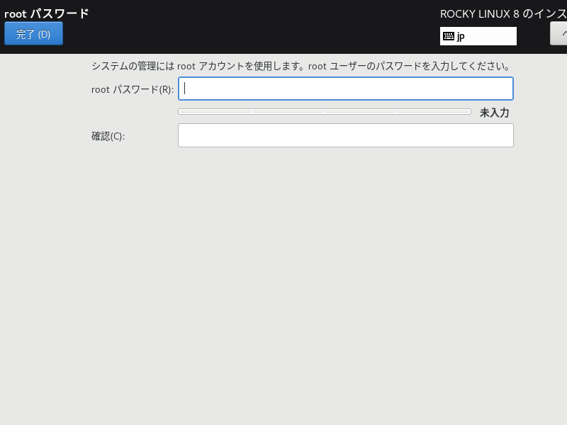 「root」のパスワードを「パスワード」「確認」欄に入力して