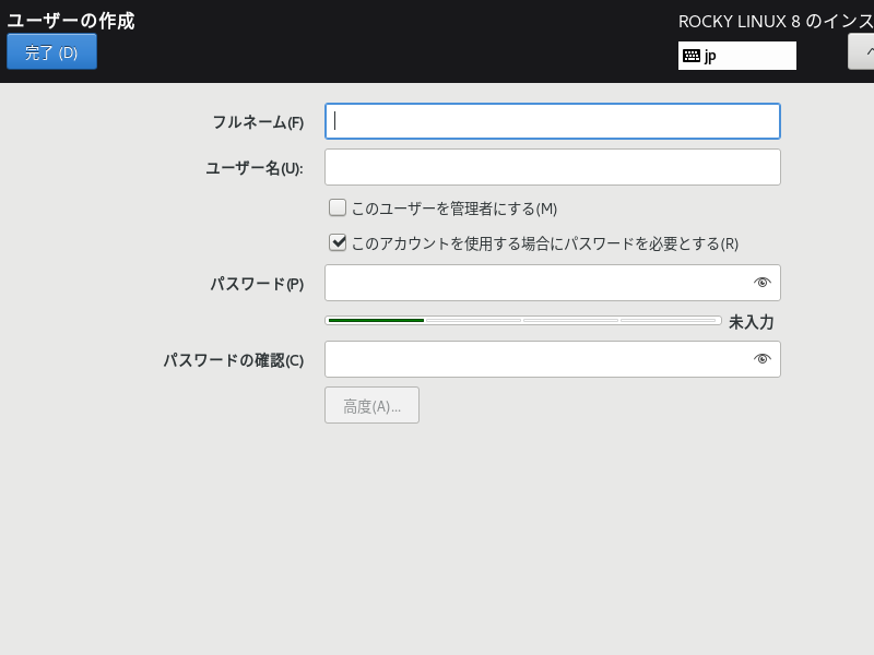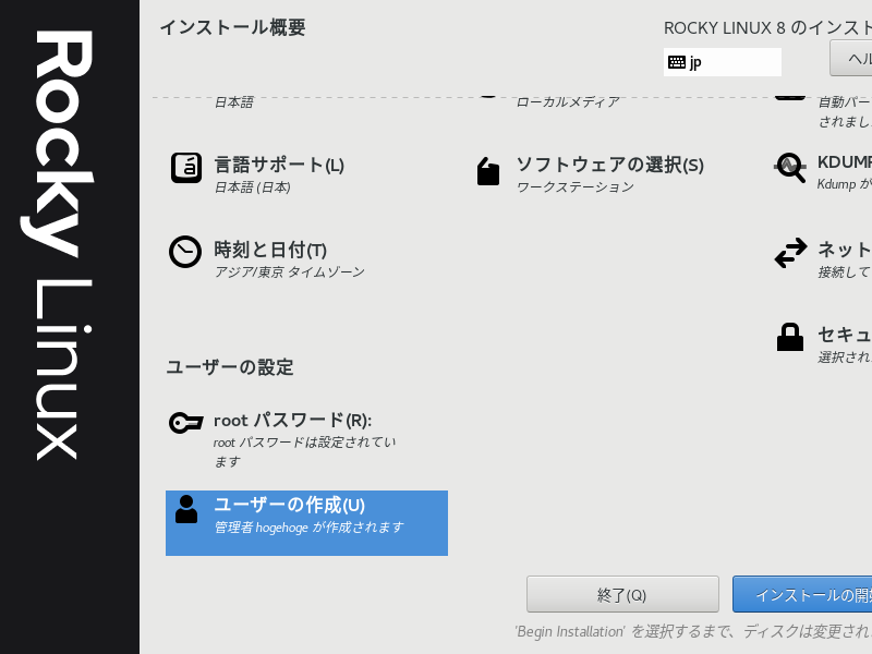 (「このユーザを管理者にする」のチェックは入れておいた方がいいかと思います)