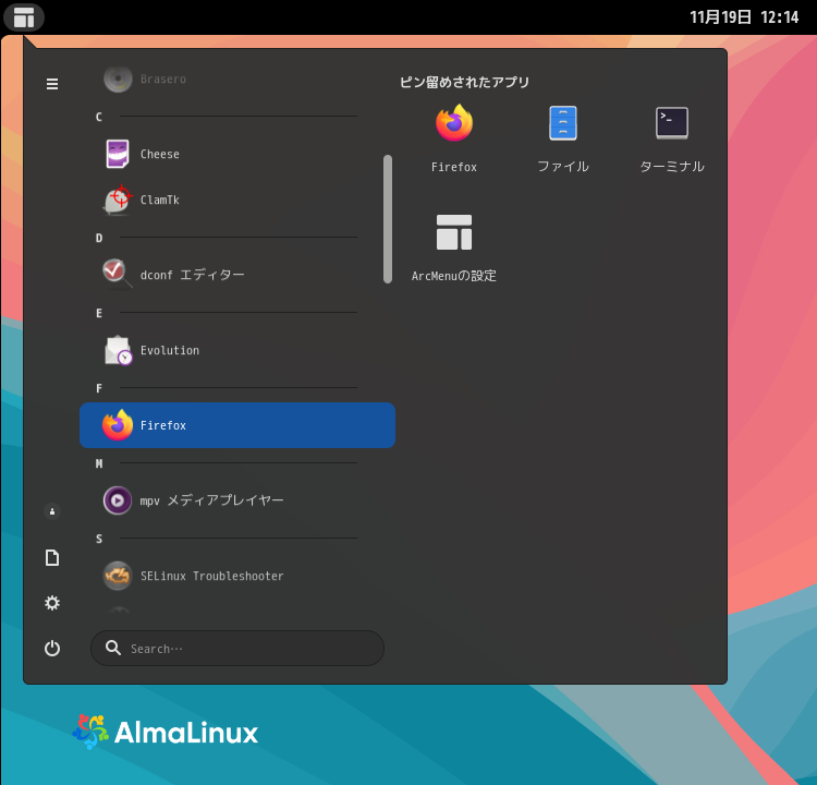 AlmaLinux - 9.5 - ブラウザ Firefox