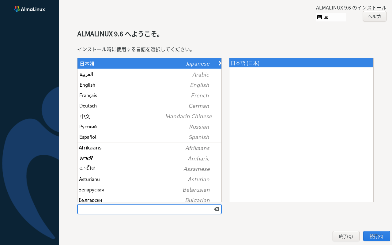 「Install AlmaLinux 9.6」を選択して
