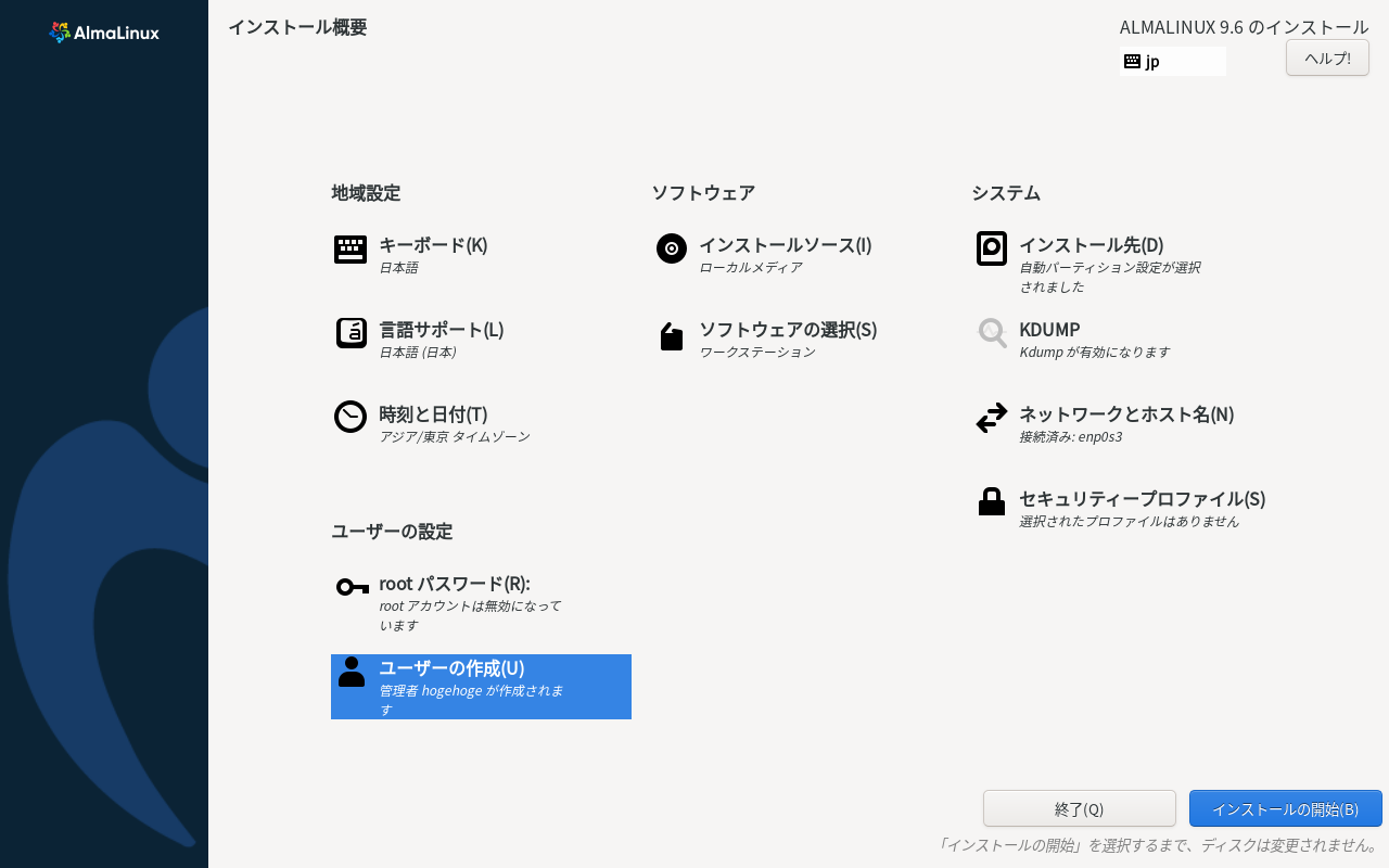 インストールの手順については、「AlmaLinux」「Rocky Linux」共に同じようなもののはず、共通の事項として、記述します。