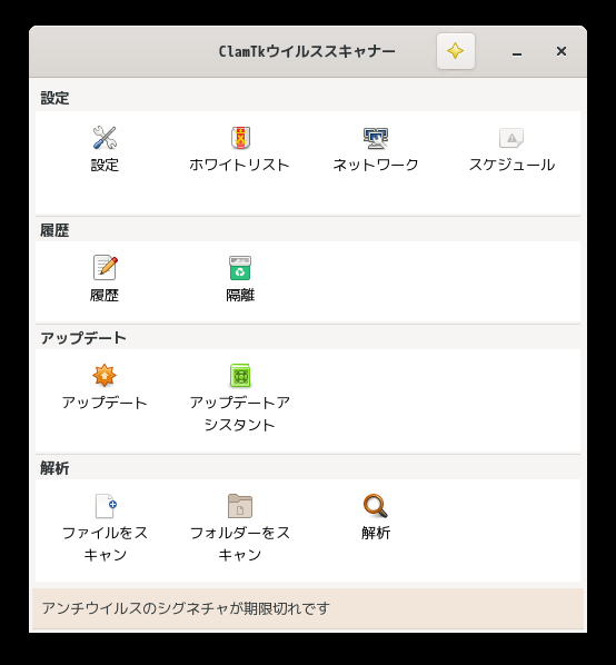「ClamTk」は、アンチウィルスソフト「ClamAV」のグラフィカルインタフェースです。