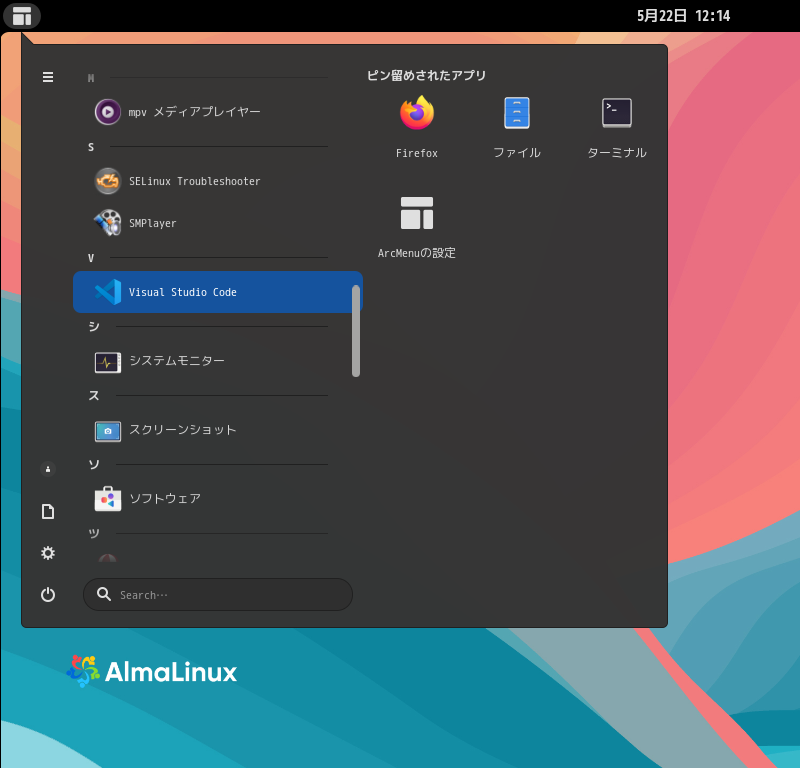 「スタート」→「V」→「Visual Studio Code」