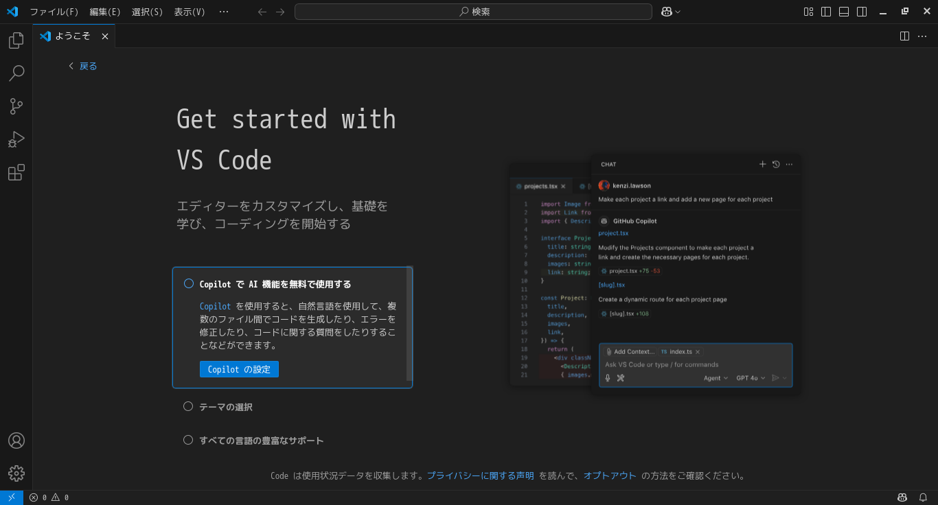 開発環境として、「Visual Studio Code」を使用します。