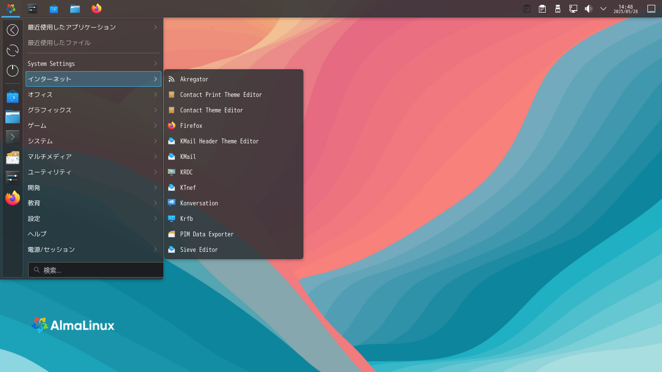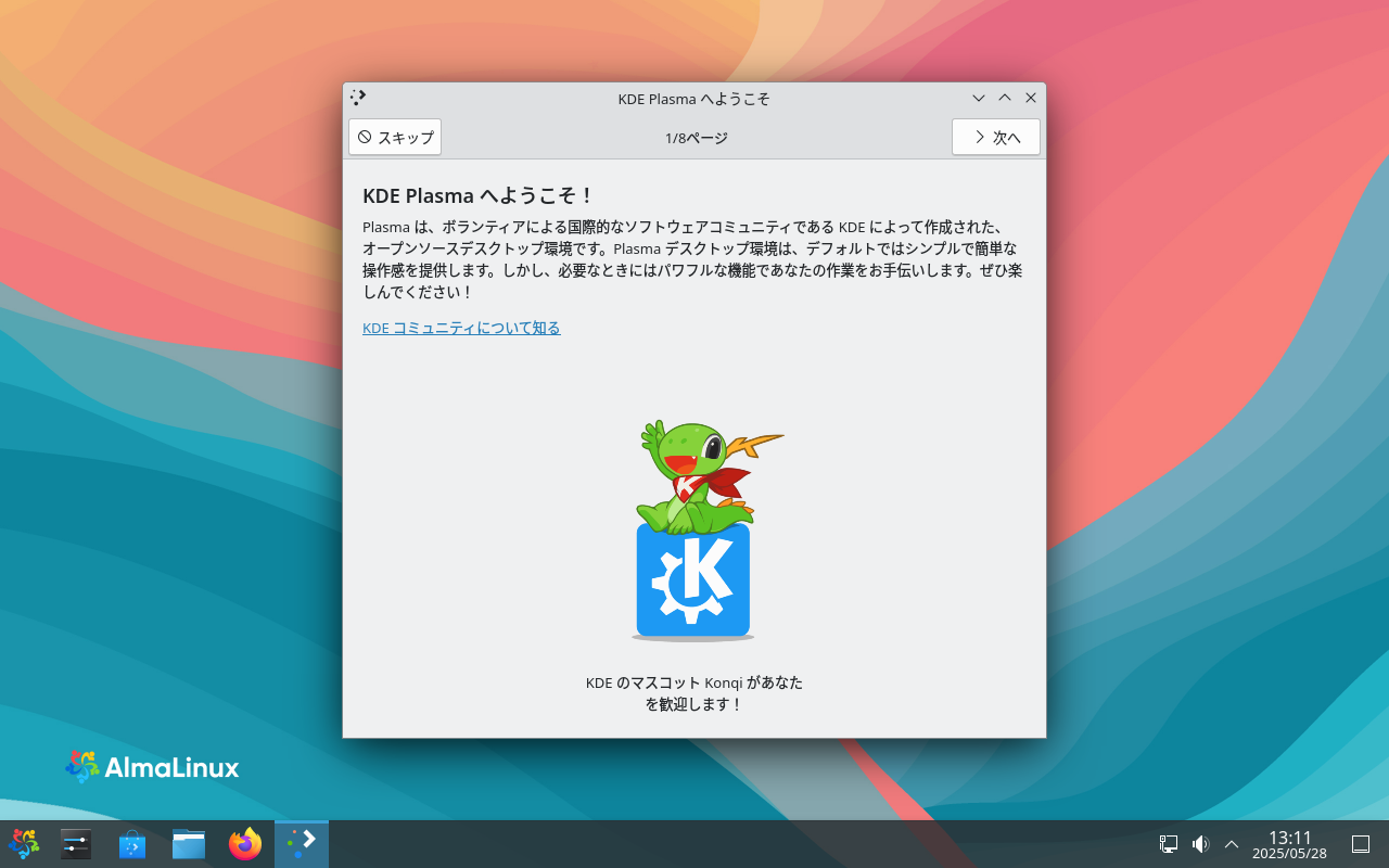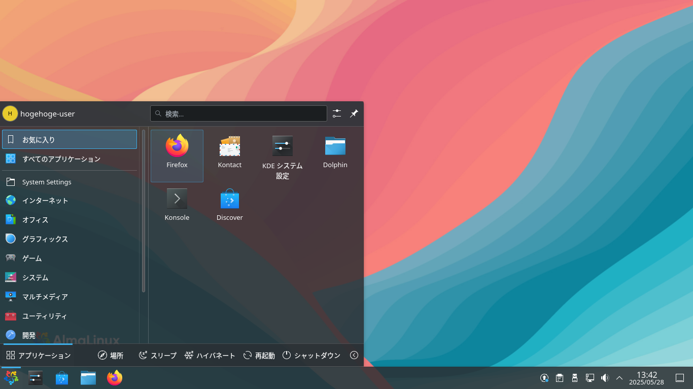 「AlmaLinux」「Rocky Linux」の共通的な、カスタマイズ操作については、「AlmaLinux・Rocky Linux 9.6 KDE - 共通事項」をご参照ください。