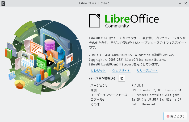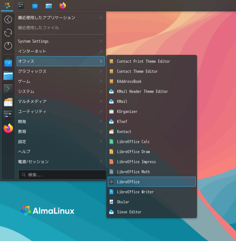 「KDE」では、「LibreOffice」がデフォルトでインストールされていますが、日本語化ファイルがインストールされていません。