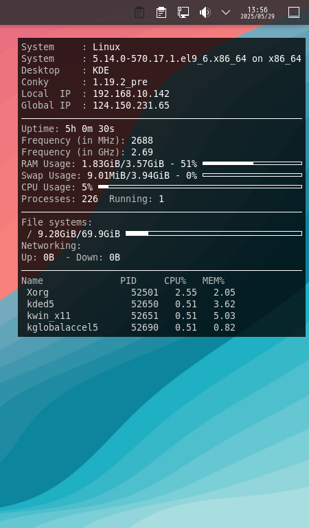 AlmaLinux - 9.6 KDE - タスクマネージャ Conky