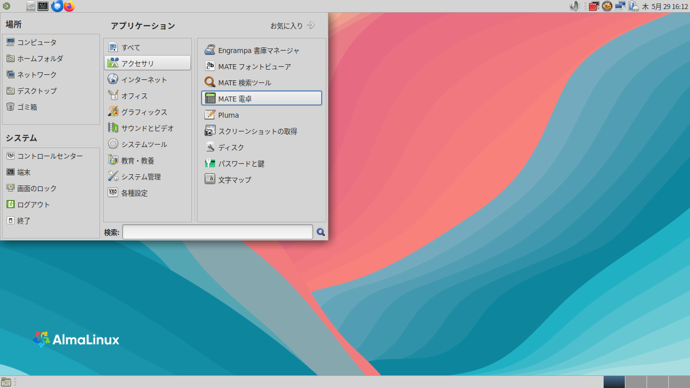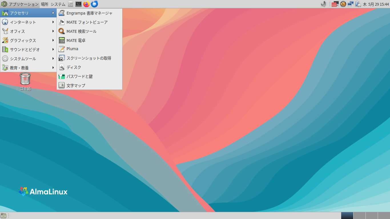 「AlmaLinux」「Rocky Linux」の共通的な、カスタマイズ操作については、「AlmaLinux・Rocky Linux 9.6 MATE - 共通事項」をご参照ください。