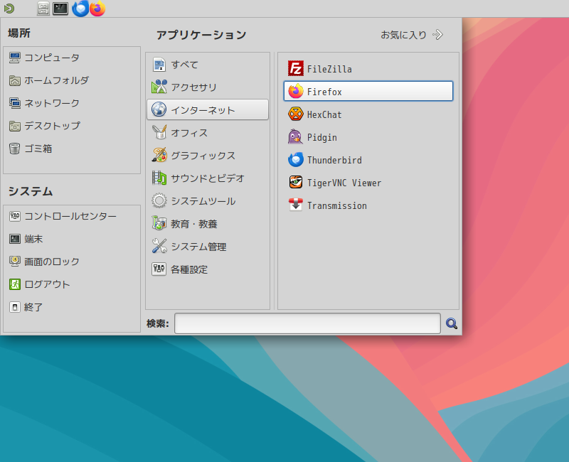 1. 概要 ブラウザとして、「Firefox」がインストールされています。 日本語化もされていますので、このまま使います。 2. 起動 「スタート」→「インターネット」→「Firefox」