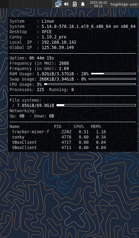 AlmaLinux - 9.6 XFCE - タスクマネージャ Conky