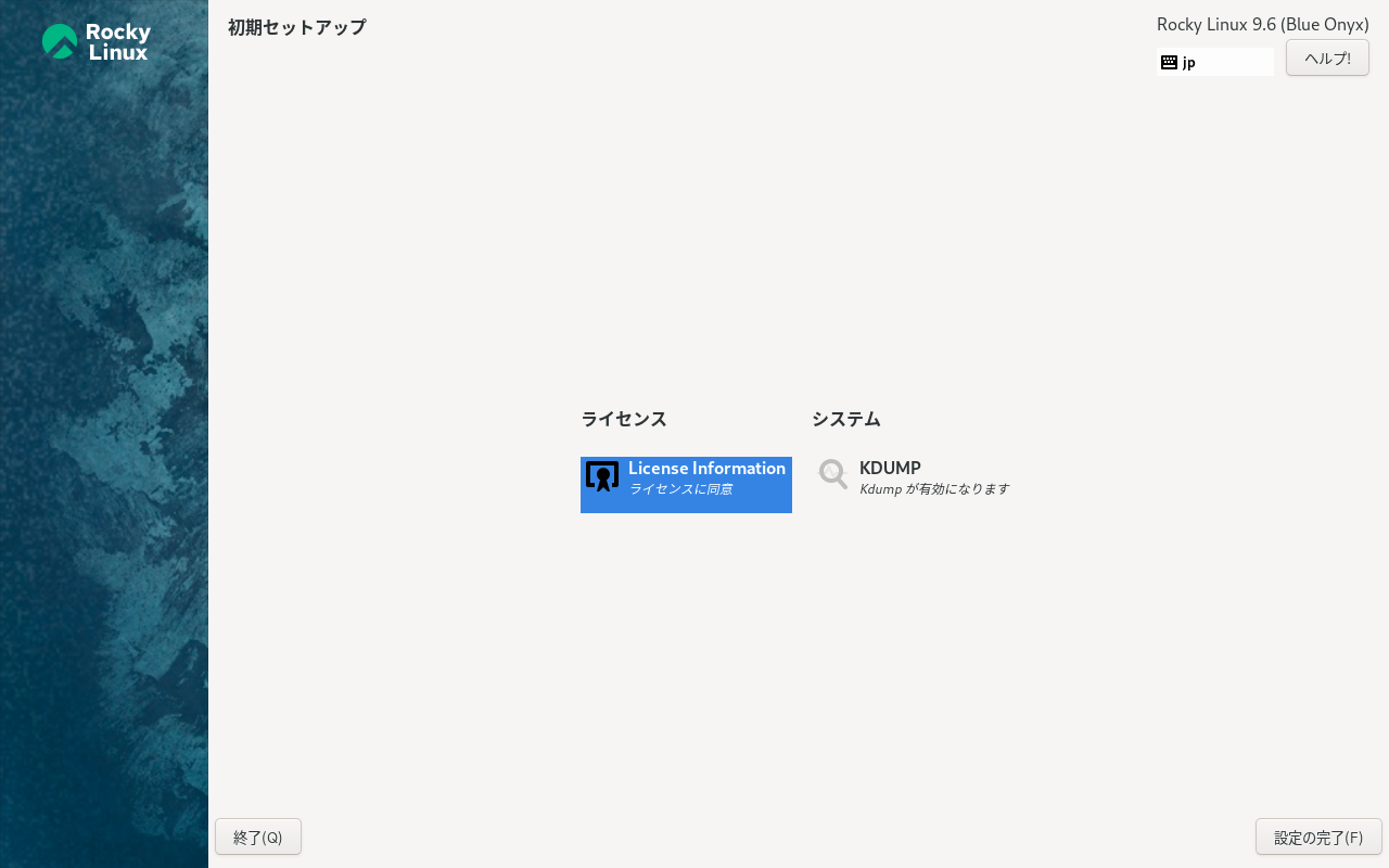 以降の手順は、「AlmaLinux・Rocky Linux 9.6 - 共通事項」のインストール手順と同様です。