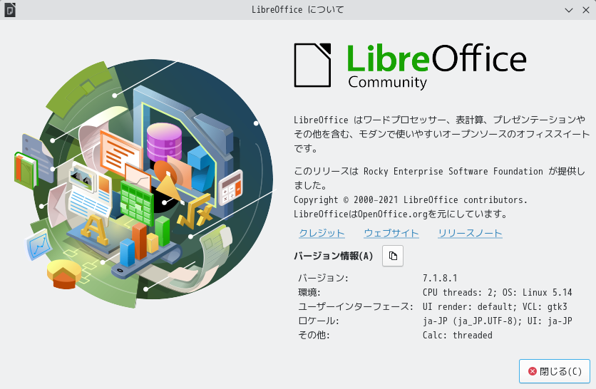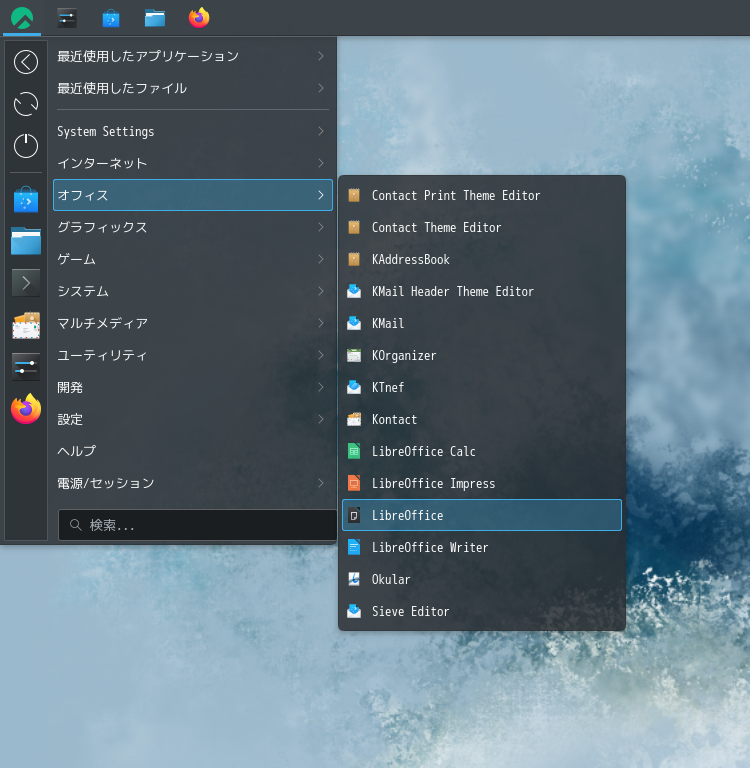 「KDE」では、「LibreOffice」がデフォルトでインストールされていますが、日本語化ファイルがインストールされていません。