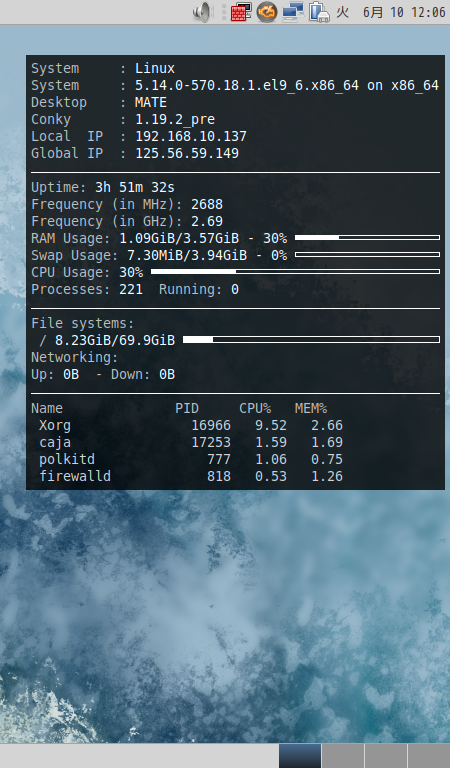 Rocky Linux - 9.6 MATE - タスクマネージャ Conky