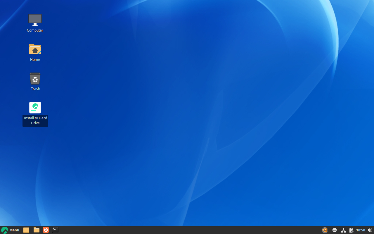 デスクトップ画面が表示されたら、左中央の「Install to Hard Drive」をダブルクリックします。