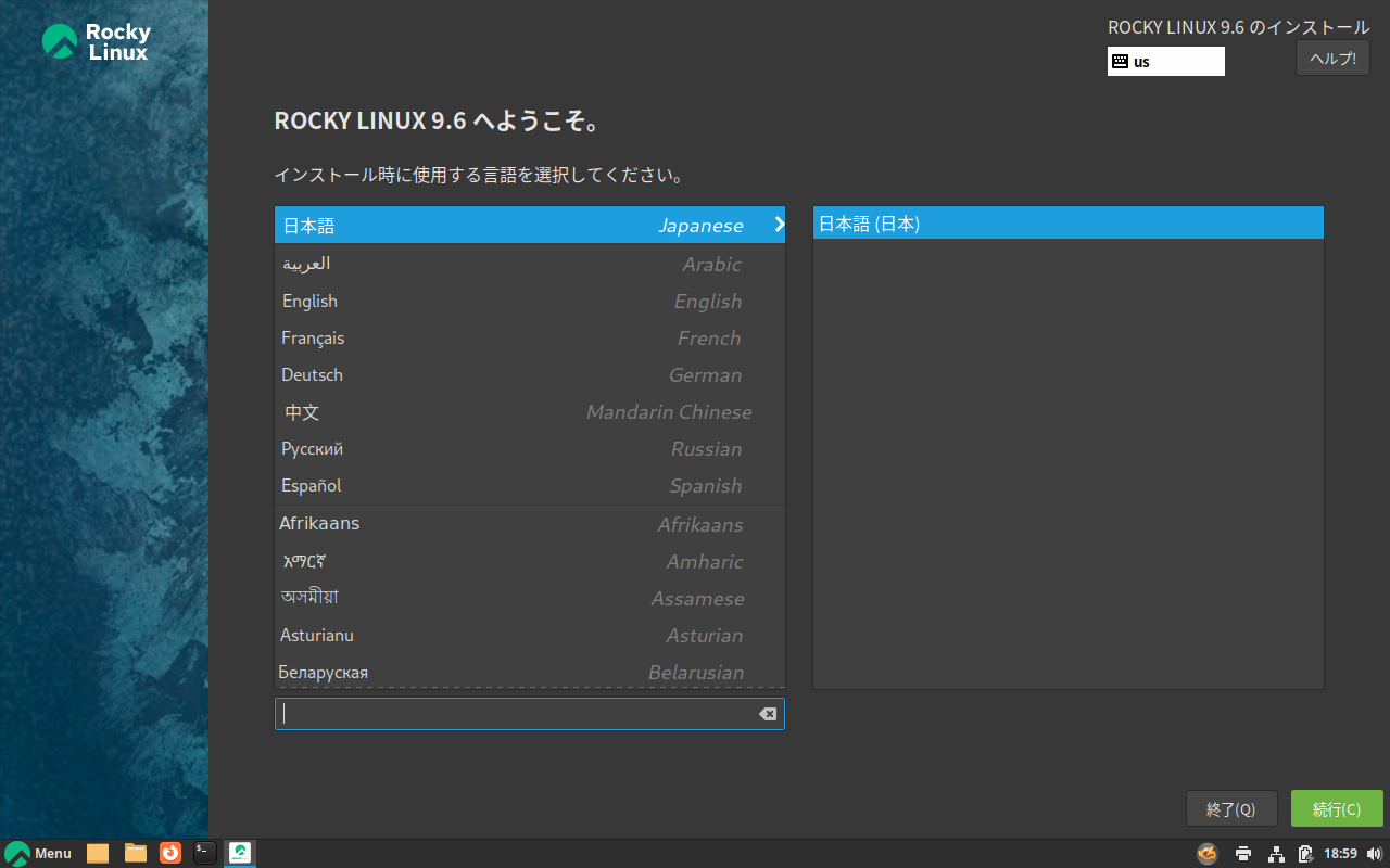 以降の手順は、「AlmaLinux・Rocky Linux 9.6 - 共通事項」のインストール手順と同様です。