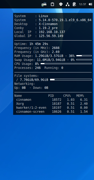 Rocky Linux - 9.6 Cinnamon - タスクマネージャ Conky