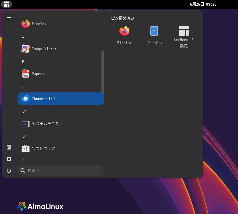 AlmaLinux 10.0 - GNOME - メールクライアント Thunderbird