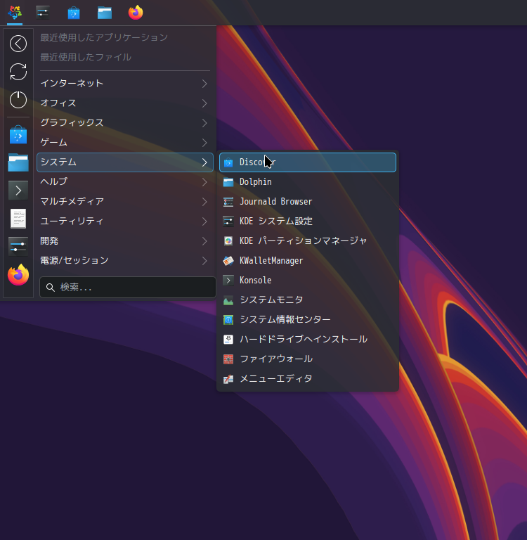 パッケージ管理フロントエンドとして「Discover」がインストールされています。