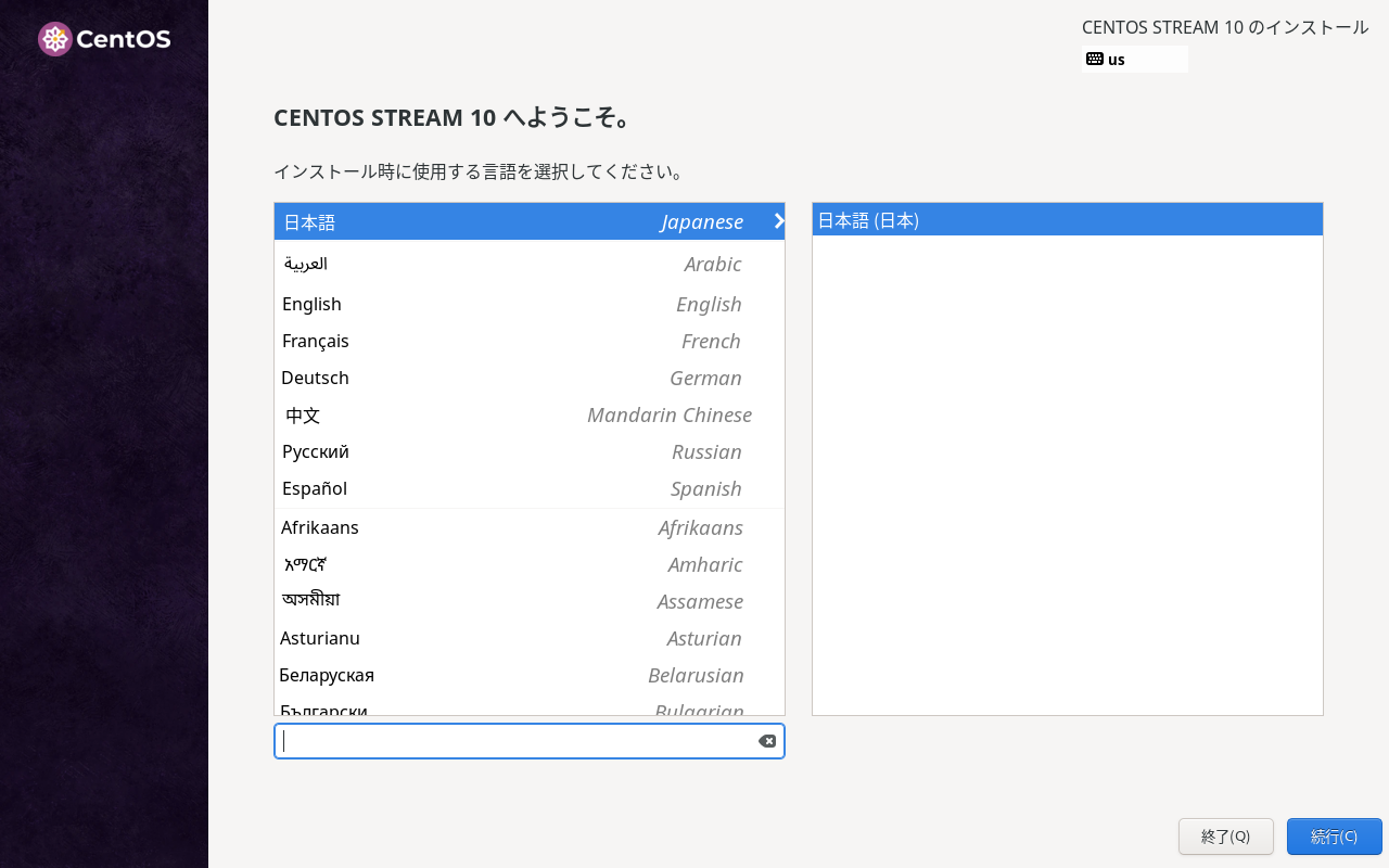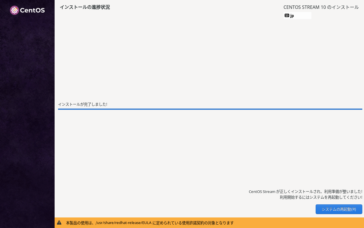 以降の手順は、「AlmaLinux・Rocky Linux 10.0 - 共通事項」のインストール手順と同様です。