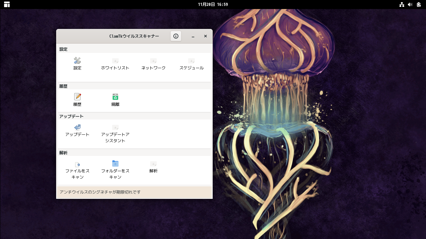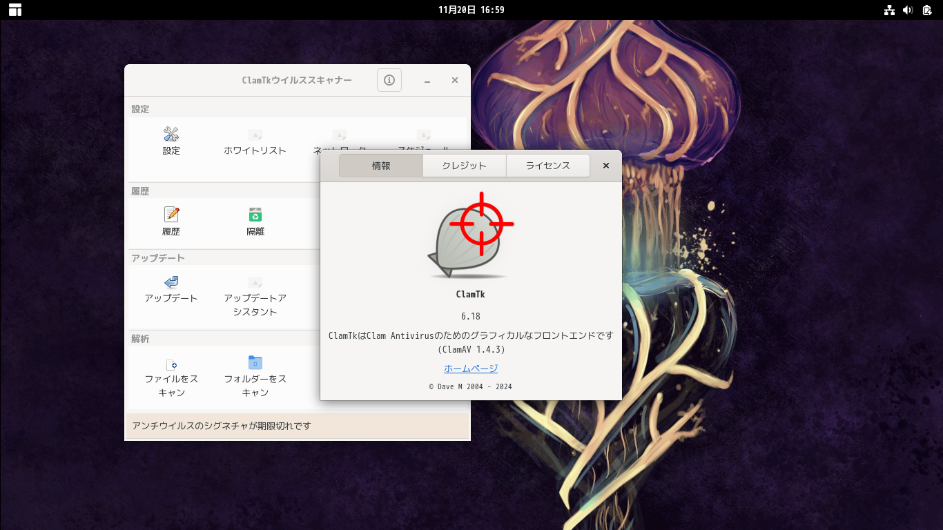 「ClamTk」は、アンチウィルスソフト「ClamAV」のグラフィカルインタフェースです。