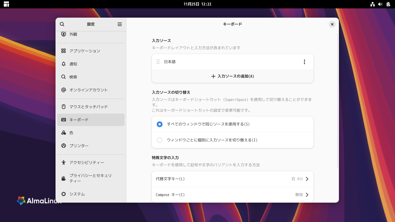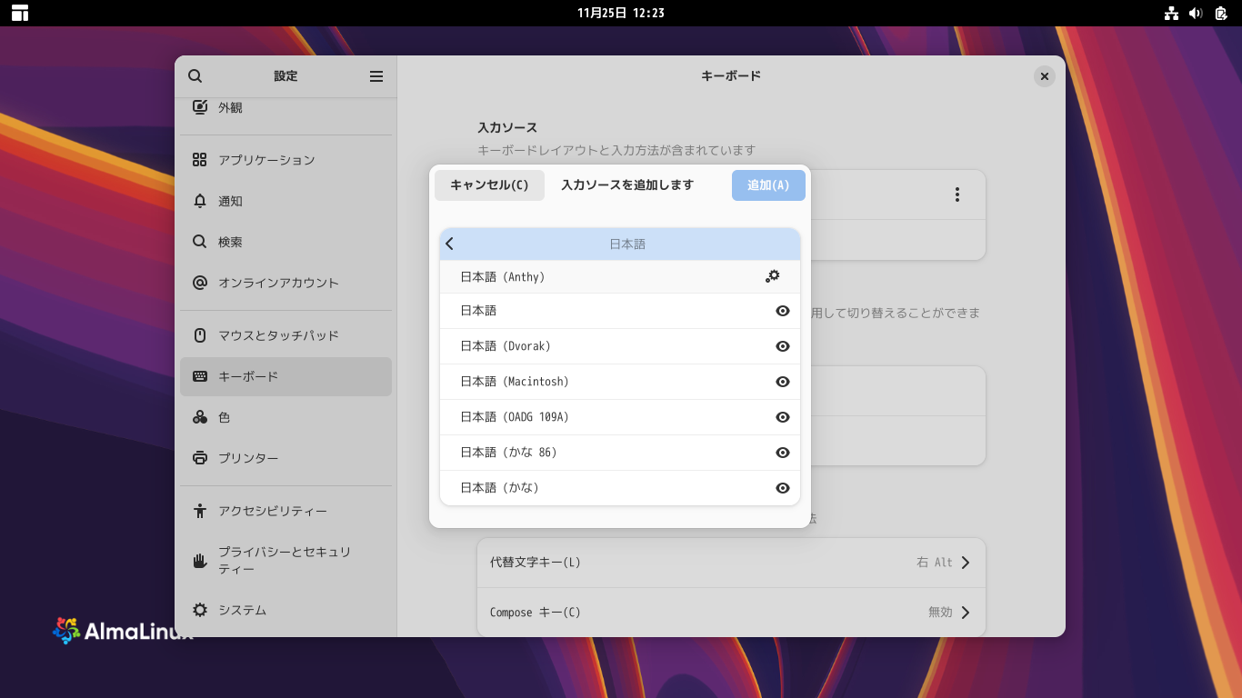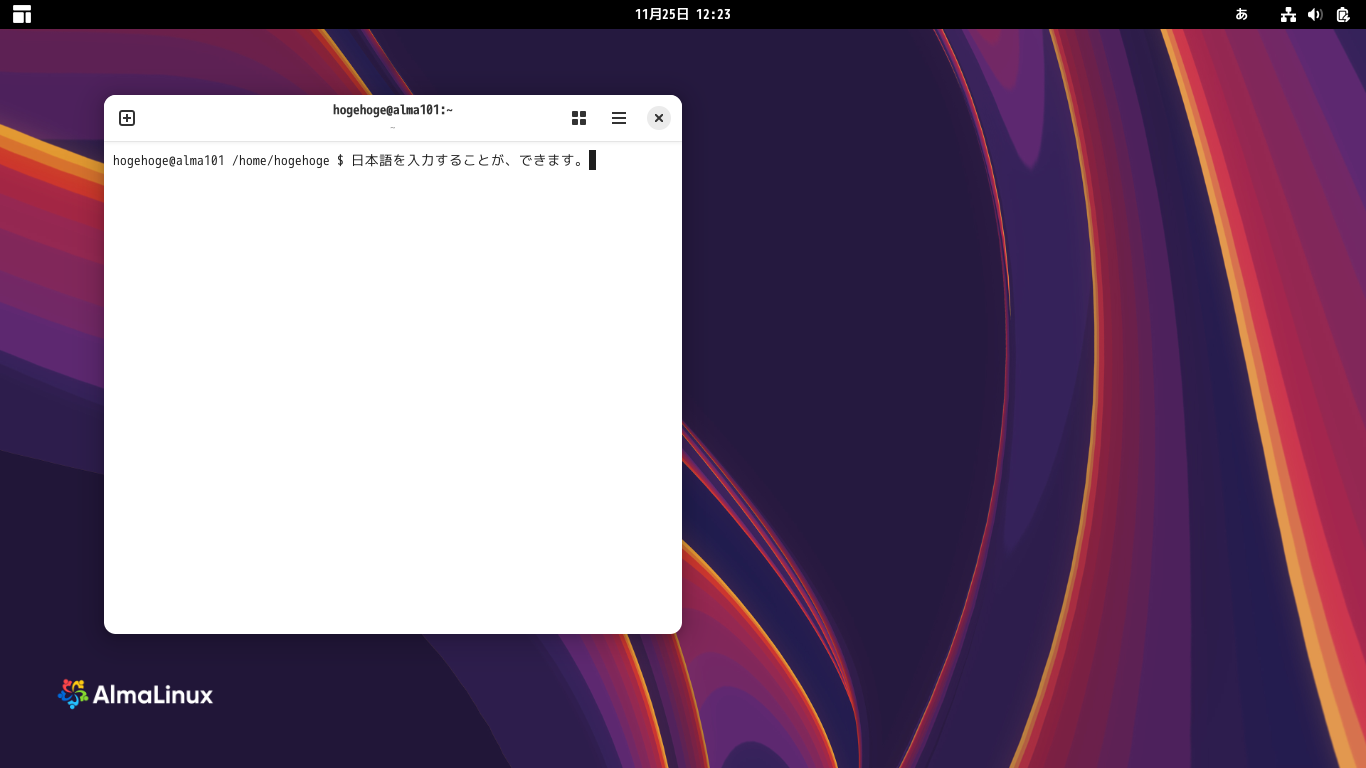 AlmaLinux 10.1 - GNOME - 日本語入力