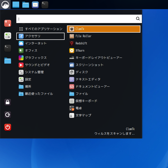 起動直後の状態です。 2024年5月10日の時点で、下記のバージョンでした。 「アンチウィルスのシグネチャが期限切れです」の表示を消す方法や、操作については「デスクトップ環境構築 - 共通事項 - アンチウイルスソフト ClamTk」をご参照ください。 |