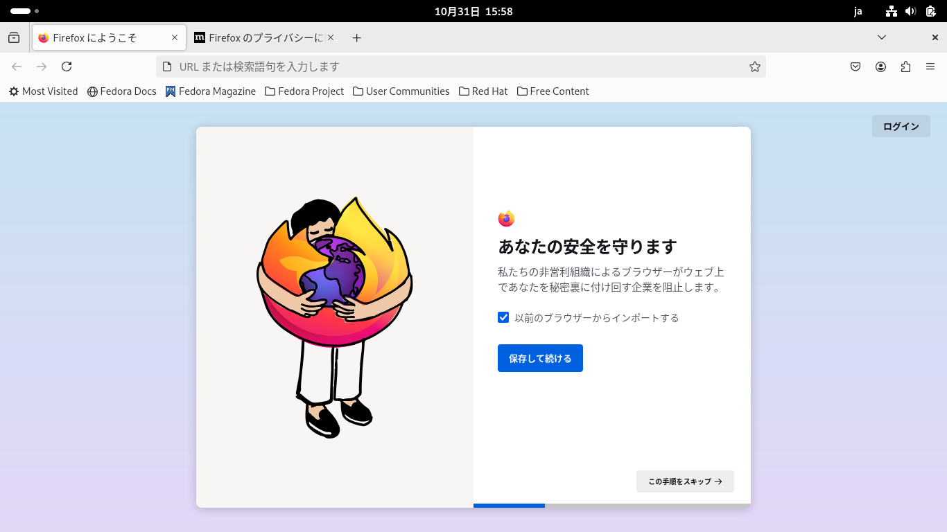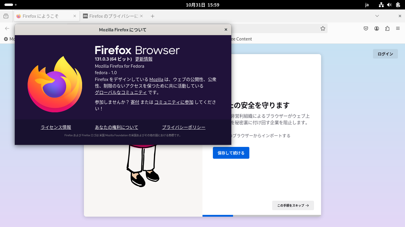 Fedora - 41 - GNOME - ブラウザ Firefox